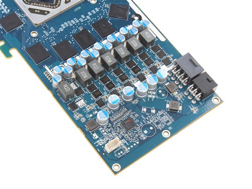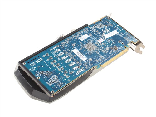 該卡還配備了雙bios開關(guān),超頻更方便,超黑了無壓力。不過1700元這個(gè)價(jià)位的顯卡不弄點(diǎn)高頻,不用點(diǎn)好料,弄個(gè)雙bios還是遠(yuǎn)遠(yuǎn)不夠的。不過值得鼓勵(lì)的是,該卡在MosFet部分添加了與PCB相連的散熱片,材質(zhì)是鐵。沒有添加鋁制背板。